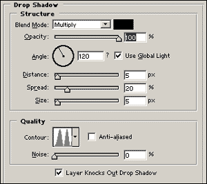 Layer -->Layer style -->Drop shadow ปรับค่าดังภาพ