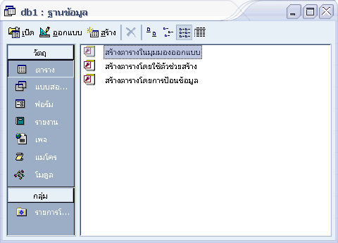 | การสร้างฐานข้อมูลใน MS Access | |||||