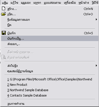| การบันทึก Query ( Save Query ) | |||