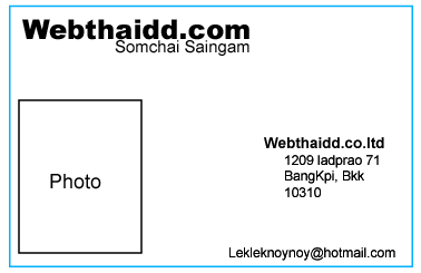 คลิกที่เครื่องมือดังภาพแล้วคลิกลงที่พื้นงาน ป้อนค่านามบัตรที่ต้องการลงไป กด