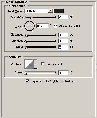12. คลิกที่เมนู Layer > layer style > Drop shadow กำหนดค่าตามภาพ
