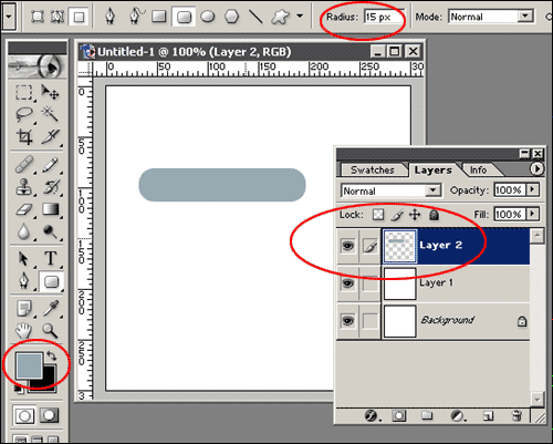 3. หลังจากนั้นให้เราสร้าง Layer ขึ้นมาใหม่อีก 1 Layer เป็น Layer ที่ 2 แล้ววาดปุ่มลงไป สีปุ่ม #98AAB1