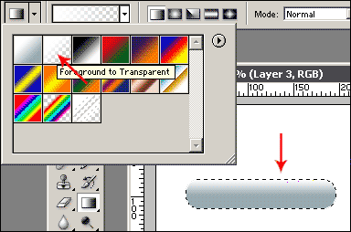4. หลังจากนั้นให้เราสร้าง Layer ขึ้นมาอีกเป็น Layer 3 และโหลด Selecttion ของปุ่มที่เราสร้างขึ้นมาโดยกด Ctrl + Layer 2 แล้วใส่สีขาวโดยใช้เครื่องมือ Gradient Tool เลือกเทสีขาวในโหมด Transparent