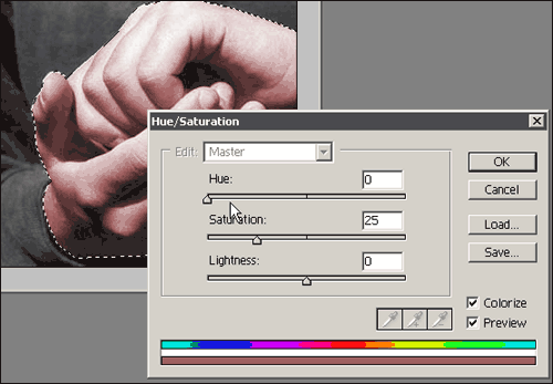 4. หลังจากนั้นเลือกเครื่องมือเปลี่ยนสี โดยเข้าไปที่เมนู Images --> Adjustments --> Hue/Saturation (Ctrl+U) ปรับเปลี่ยนสีตามที่เราต้องการ โดย Hue : เฉดสี, Saturation : ความอิ่มตัวของสี