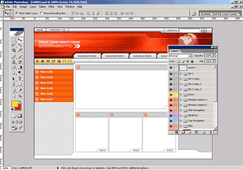 3. จากนั้นให้นำ Mouse ไปคลิกที่ตัวอักษรที่เขียนว่า Your Logo Right Hear จากนั้นจะเห็นได้ว่าโปรแกรมจะไปเลือกที่ Layer 2 นั่นก็หมายความว่า Logo ที่ผู้จัดทำได้ทำมานั้นอยู่ที่ Layer 2 ดังนั้นถ้าเรามี Logo ของเราเองให้ทำการลบ Layer 2 ทิ้งแล้วนำ Logo ของเรามาใส่แทน ดังภาพ