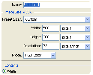 1.file/new,w=500,h=300,resolution=72 pix/inch