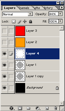 9. สร้างเลเยอร์ใหม่ แล้วเทสีขาวลงไป ปรับ Opacity =44