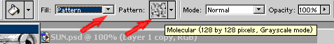 4. เลือกเครื่องมือเทสีแล้วเลือกลายแพทเทิร์นเป็นวงกลมดังรุป