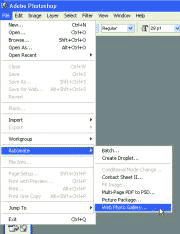 1. เปิดซอฟต์แวร์ Adobe Photo ขึ้นมาก่อน จากนั้นเลือกเมนู File เข้าไปที่ Automate จะพบว่ามีตัวเลือกสุดท้ายที่ชื่อว่า Web Photo Gallery คลิ้กเลือกได้ทันทีค่ะ (รูปที่ 1)