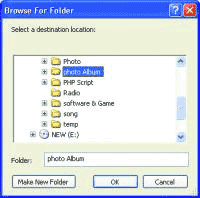 4.นอกจากจะระบุโฟลเดอร์ของไฟล์ภาพที่จะนำมาทำแล้ว เรายังต้องระบุโฟลเดอร์สำหรับการเก็บไฟล์ที่ทำอัลบั้มเสร็จเรียบร้อยแล้วอีกด้วย (รูปที่ 4)