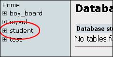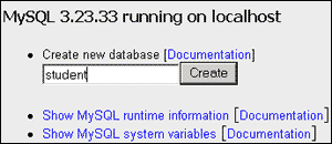 2.> ใส่ชื่อที่เราต้องการ Database ในช่อง Create new database แล้วกดปุ่ม Create ในที่นี้ผมจะยกตัวอย่างการสร้าง Database : student