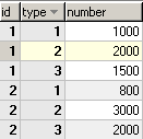 tb_value ตางรางในการเก็บข้อมูลหลัก CREATE TABLE `tb_value` ( `id` int(2) NOT NULL default '0', `type_id` int(2) NOT NULL default '0', `number` int(11) default NULL, PRIMARY KEY (`id`,`type_id`) ); INSERT INTO `tb_value` VALUES (1,1,1000); INSERT INTO `tb_value` VALUES (1,2,2000); INSERT INTO `tb_value` VALUES (1,3,1500); INSERT INTO `tb_value` VALUES (2,1,800); INSERT INTO `tb_value` VALUES (2,2,3000); INSERT INTO `tb_value` VALUES (2,3,2000); |