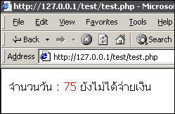 | <? echo "จำนวนวัน : <Font color=red> ".date ("z")."</Font> ยังไม่ได้จ่ายเงิน<Br>"; ?> |