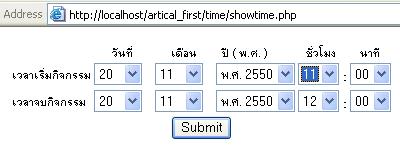 3. เมื่อสร้างนำไฟล์ทั้ง 2 ไฟล์ที่สร้างเสร็จแล้วเราก็เริ่มทดลองโปรแกรมได้เลยโดยเปิดหน้า showtime.php ดังรูป