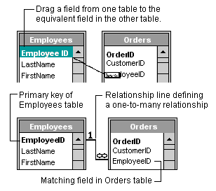 ระบบฐานข้อมูลเชิงสัมพันธ์จะมีการทำงานกับข้อมูลตั้งแต่ 2 ตารางขึ้นไป โดยจะมีรูปแบบของความสัมพันธ์ในการทำงานอยู่ 3 แบบด้วยกันคือ