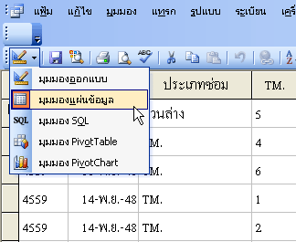 4. หากคุณต้องการแก้ไขแบบสอบถามของคุณให้มีรูปแบบหรือคุณสมบัติ เพิ่มเติมก็ให้คลิกเลือกที่เมนู มุมมองแผ่นข้อมูล