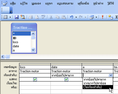 5. หลังจากนั้นจะปรากฎมุมมองแผ่นข้อมูลให้คุณเลือกเขตข้อมูลที่คุณต้องการแก้ไข หรือกำหนดเงื่อนไขการแสดงข้อมูลได้