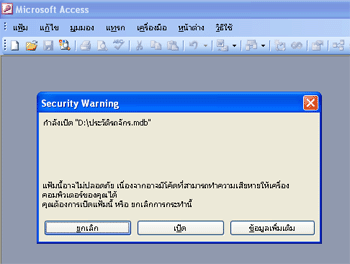 ในบางครั้งไฟล์accessทีเราดาวน์โหลดมาจากอินเทอร์เน็ต หรือจากการส่งไฟล์แนบมาเราไม่สามารถเปิดได้ไม่ว่าจะคลิกปุ่มไหนก็เปิดไม่ได้หรือถ้าโชคดีหน่อยก็เปิดได้แต่จะมีป๊อปอัปขึ้นมาเตือนเราเกี่ยวกับความปลอดภัยในการเปิด ซึ่งเราต้องคอยคลิกปุ่ม Open(เปิด)