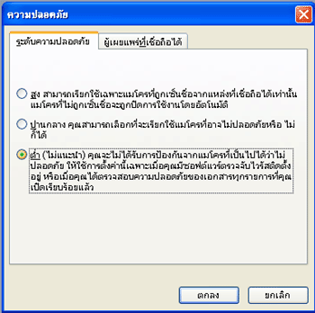 3.แล้วจะปรากฏหน้าต่าง Security ขึ้นมา ให้เลือกเป็น Low(ต่ำ)