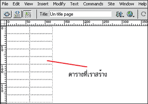 3.> หลังจากที่เราสร้างตารางเสร็จแล้ว ให้เรารวมเซล์ของตารางแถวแรก และกำหนดขนาดความกว้างโดยประมาณที่ 10 px ดังภาพ