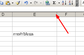 2. วางเมาท์ที่ขอบเซล ( ที่ลูกศรชี้ ) แล้วดับเบิ้ลคลิก