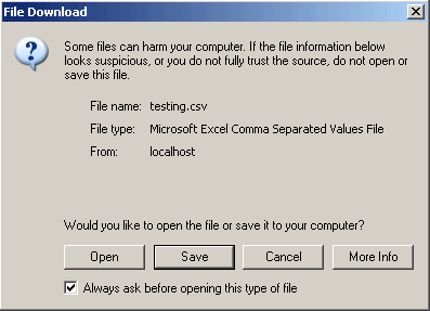 header('Content-Disposition: attachment; filename="testing.csv"');