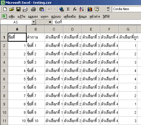echo "ข้อที่,คำถาม,ตัวเลือกที่ 1,ตัวเลือกที่ 2,ตัวเลือกที่ 3,ตัวเลือกที่ 4,ตัวเลือกที่ถูก,\n";