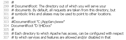 #DocumentRoot "C:/AppServ/www" <-- จะอยู่บรรทัดที่ 303