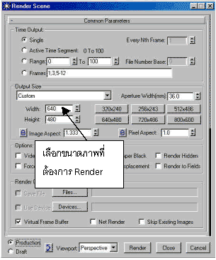 จากนั้นเลือกขนาดภาพความกว้าง (Width) และความสูง (height) แล้วคลิก Render