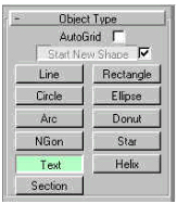 ที่บรรทัดถัดมาจะได้ Command Panel ดังภาพ เลือกไปที่คำสั่ง Text แล้วไปคลิกเมาส์ ในหน้าจอที่เราทำงานอยู่