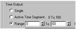 - เมื่อเข้ามาสู่หน้าต่าง Render ให้ดูที่ ช่อง Time output เลือก Range แล้วเปลี่ยนค่าเฟรมที่ 100 เป็น 60 คือเฟรมสุดท้าย เราจะทำการ Render ตั้งแต่ เฟรมที่ 0 - 60