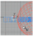 จะกลายเป็นสีเขียว จากนั้น คลิกลากจาก Dummy ไปที่ทรงกลม จะสังเกตเห็นว่า เคอร์เซอร์จะเปลี่ยนเป็นรูปสี่เหลี่ยม 2 รูปเชื่อมกันอยู่ดังภาพ
