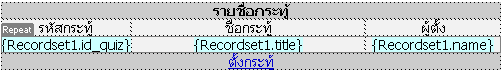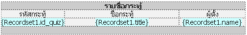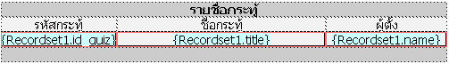 การดึงฟิลด์มาแสดงที่ ตารางที่เราออกแบบไว้โดยการเลือกชื่อฟิลด์ดังรูปข้างบนที่ต้องการมาใส่ได้เลย