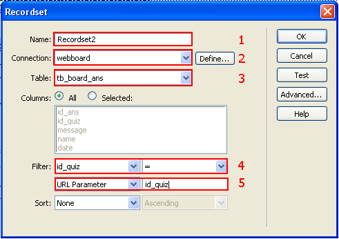 5. ค่าที่ส่งมาจาก webboard ชื่อ id_quiz