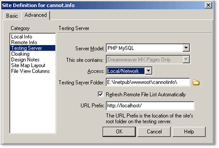 4. ตั้งค่าใน หน้าต่าง Site Definition ที่แท็ป Advanced