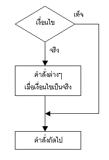 แต่ถ้าเงื่อนไขเป็นเท็จก็จะ วิ่งข้ามมาที่คำสั่งถัดไปซึ่งก็คือส่วนต่อไปของโปรแกรมที่ไม่ได้เกี่ยวข้องกับคำสั่ง