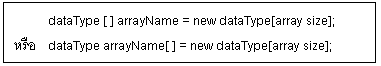dataType = ชนิดข้อมูลของตัวแปรอะเรย์ เช่น int ,double เป็นต้น