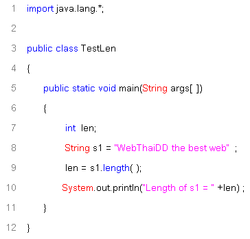 method นี้จะใช้หาความยาวของ String ได้ โดยมีรูปแบบคือ