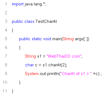1 ตัวจากข้อความ s1 โดยใช้ charAt(2) ตัวเลขในวงเล็บจะเป็นการระบุตำแหน่งของตัวอักษรในข้อความ