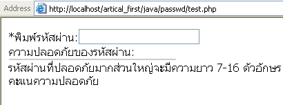 <DIV id=systemdata>*พิมพ์รหัสผ่าน:<INPUT class="inputtext_register" onKeyPress="javascript:valid(this)" id="password1" onKeyUp="testPassword(document.frmregister.password1.value)" type="password" maxLength="150" size="25" name="password1"><br>