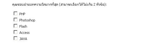 บทความนี้การทำ Java Script ที่ทำการกำหนดค่าให้สามารถเลือก check ค่าใน checkbox ได้เท่าไหร่ครับ เป็น Script ที่ไม่ยากครับ