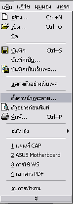 1.คลิ๊กที่ แฟ้ม > ตั้งค่าหน้ากระดาษ (File > Page Setup)