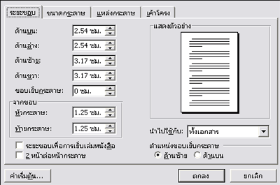 | ระยะขอบหน้ากระดาษ ( Margin ) | ||||||