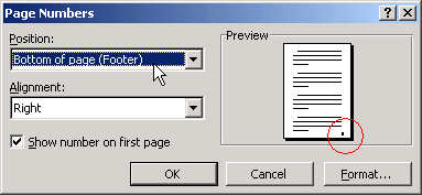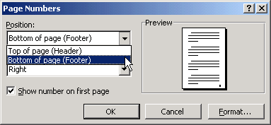 เลือก Bottom of Page ตัวเลขจะแสดงด้านล่างของเกสาร
