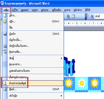 1. หลังจากทำการสร้างเอกสารเรียบร้อยแล้วเมื่อเราต้องการที่จะทราบถึงลักษณะที่เราต้องการดูก่อนที่จะทำการพิมพ์
