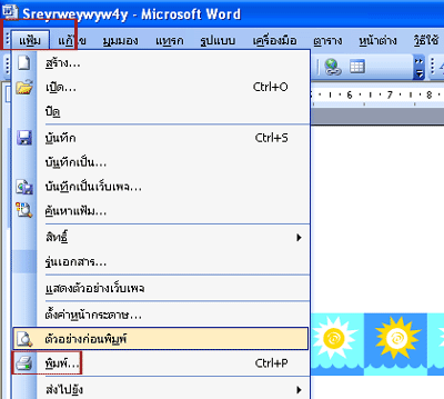 1. หลังจากที่เราได้ทำการสร้างเอกสารแล้ว และมีความต้องการที่จะทำการพิมพ์เอกสาร