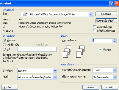 5. นอกจากนั้นยังกำหนดช่วงของหน้า จำนวนสำเนา การย่อขยายจำนวนหน้าต่อหน้ากระดาษ
